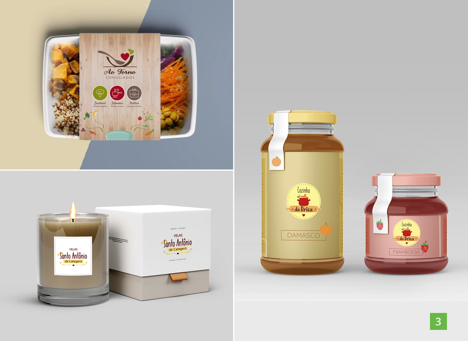 3. DiversosCriação de marca e embalagens para comida congelada, velas e geleias.
