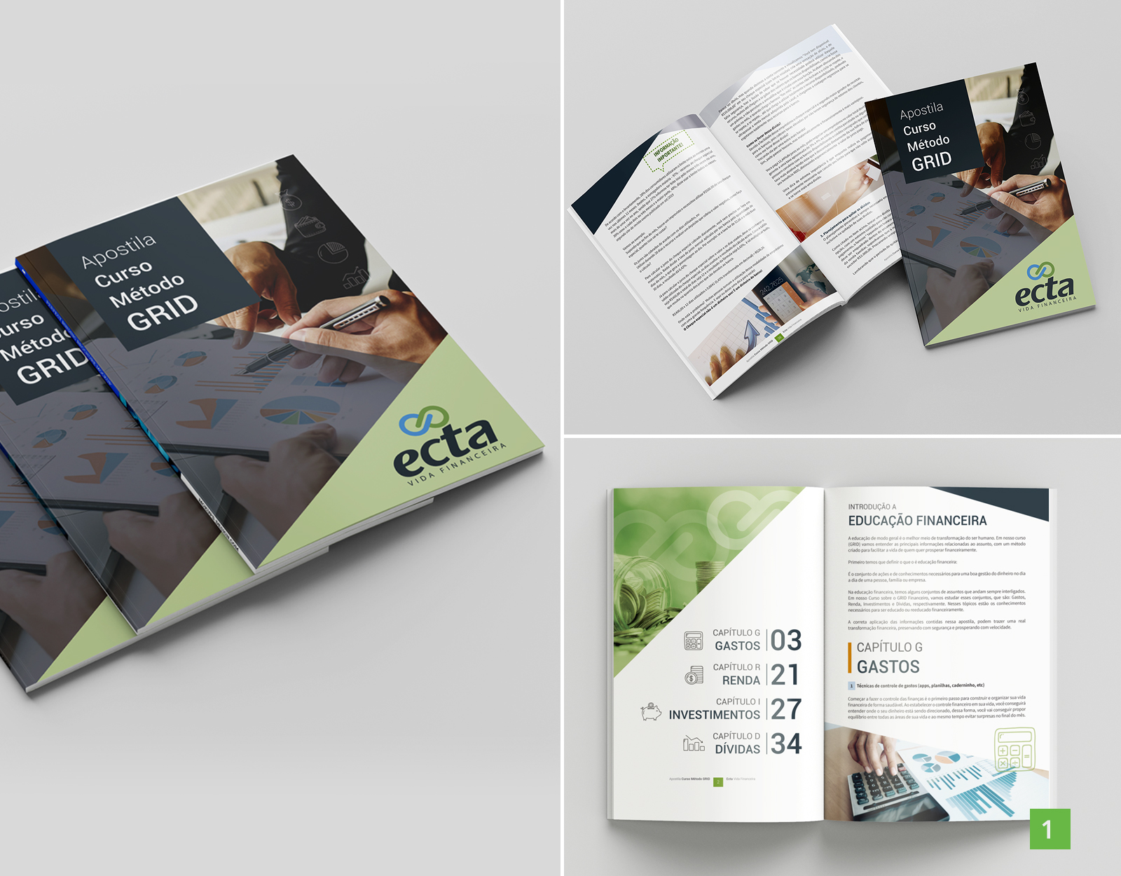 Projeto gráfico e diagramação de apostila para financeira.