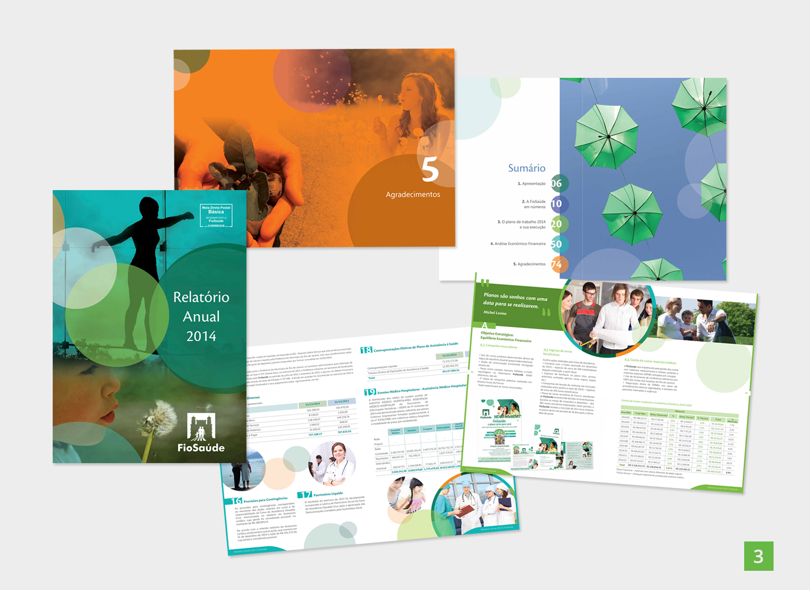 Projeto gráfico e diagramação de relatório anual para operadora de plano de saúde da FioCruz.