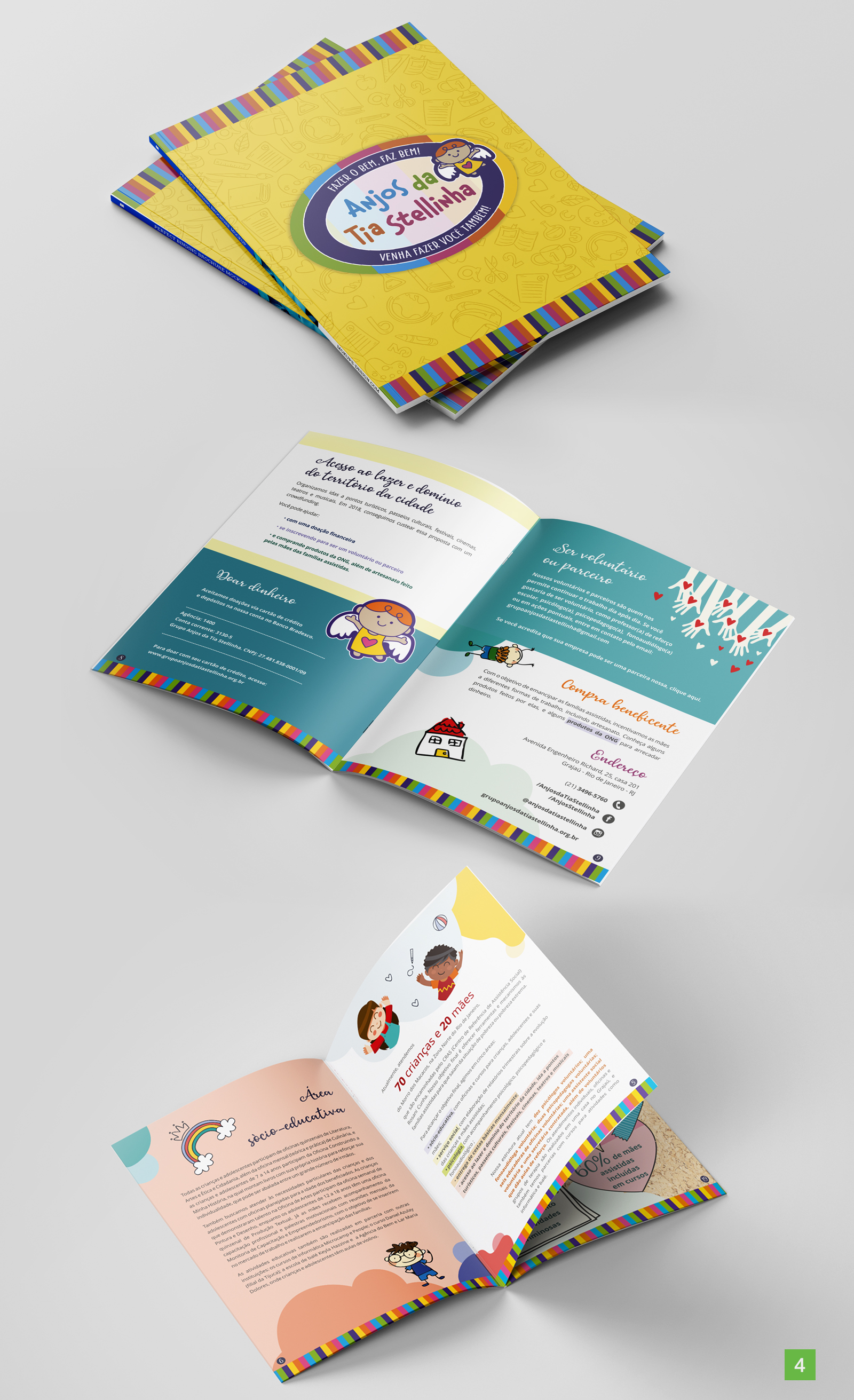 Projeto gráfico e diagramação de relatório para ong.