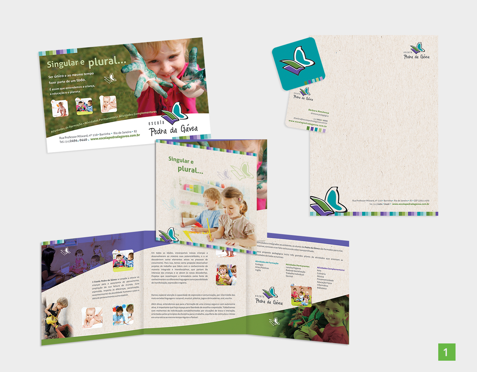 Criação de peças institucionais para escola: papelaria, busdoor e folheto.